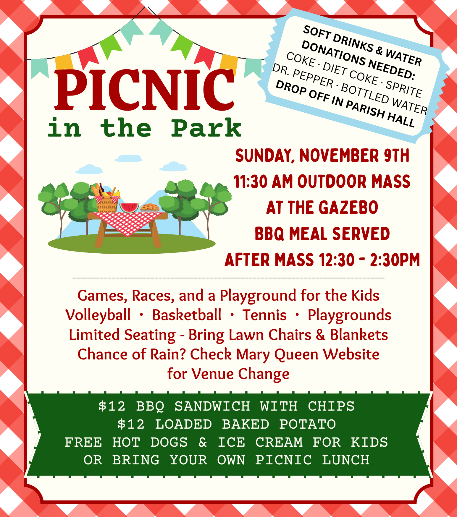 Thank you for purchasing your picnic ticket online. We are looking forward to enjoying this faith-filled fun time with you!